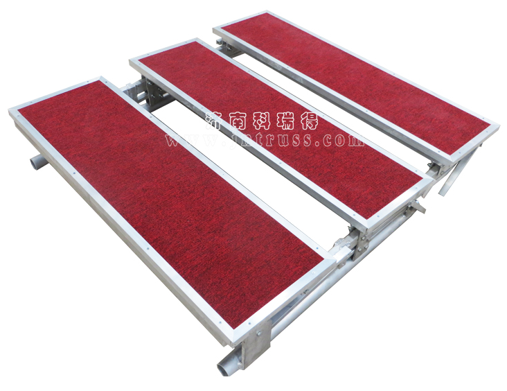 臺面18mm厚建筑模板承重好,表面鋪有5MM紅色地毯保證整體大方美觀。